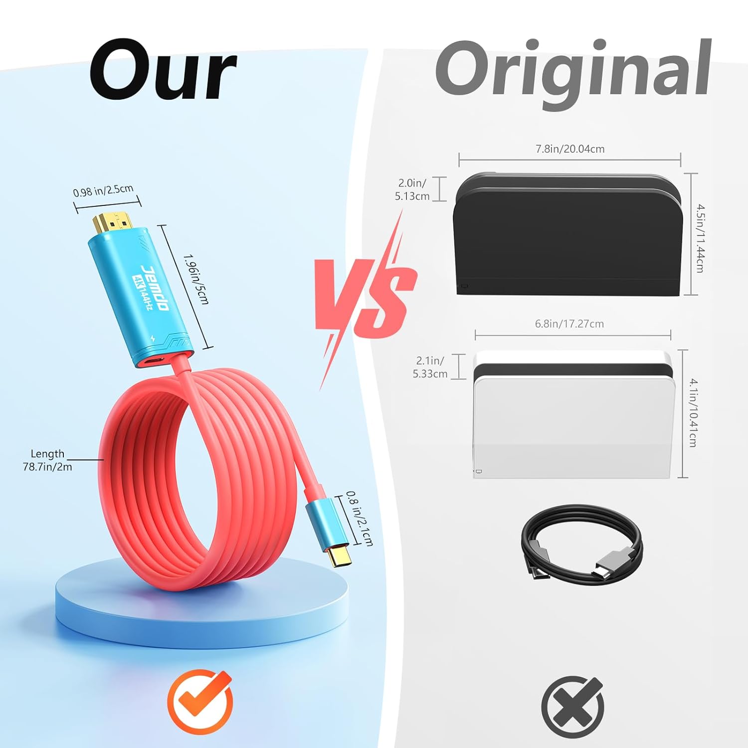 Compared to bulky docks, this cable offers a compact and portable all-in-one solution with video output + power charging, perfect for travel, on-the-go gaming, and avoiding overheating issues often seen in third-party docks.